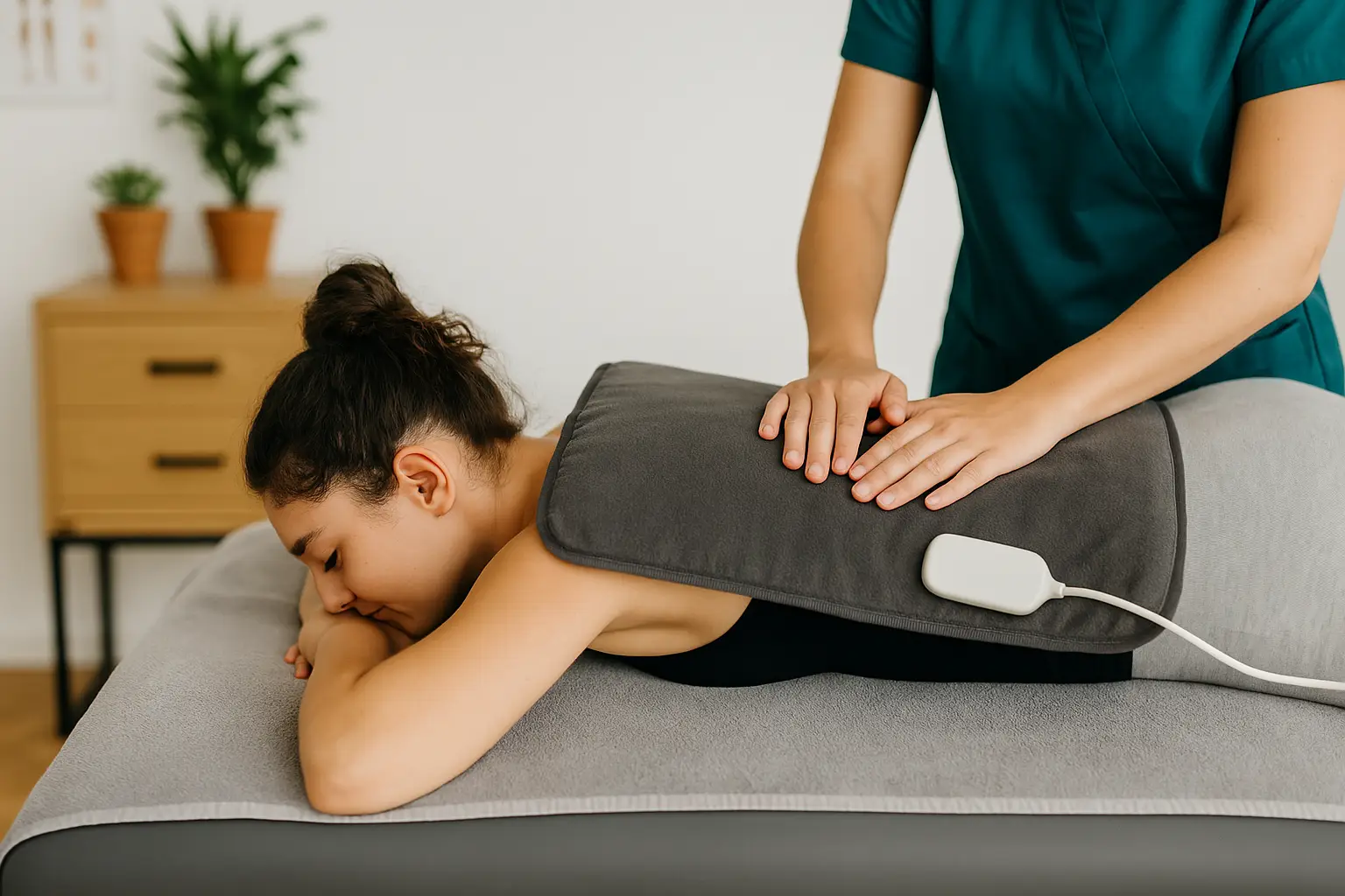 Tiefenwirksame Wärme lockert verspannte Muskulatur, fördert die Durchblutung und bereitet das Gewebe optimal auf weitere physiotherapeutische Maßnahmen vor.